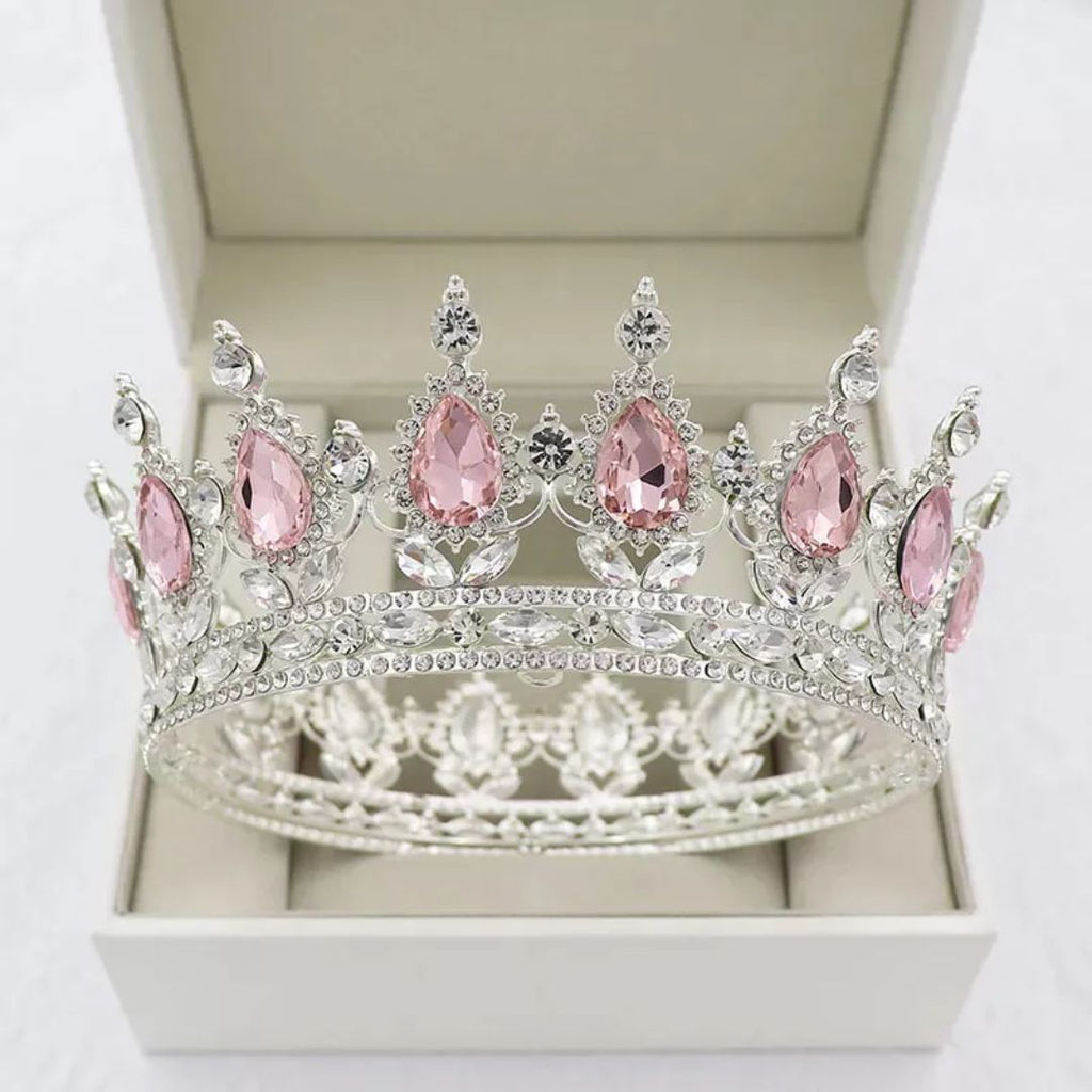 Esta decoración jumbo de Corona Decorativa tiene un tamaño de 12x5.5 cm y está diseñada para ser utilizada tanto en pasteles como en la cabeza, con un elegante color plata con piedras rosas. Ideal para bodas, quinceaños, novias, despedida de soltera, etc.