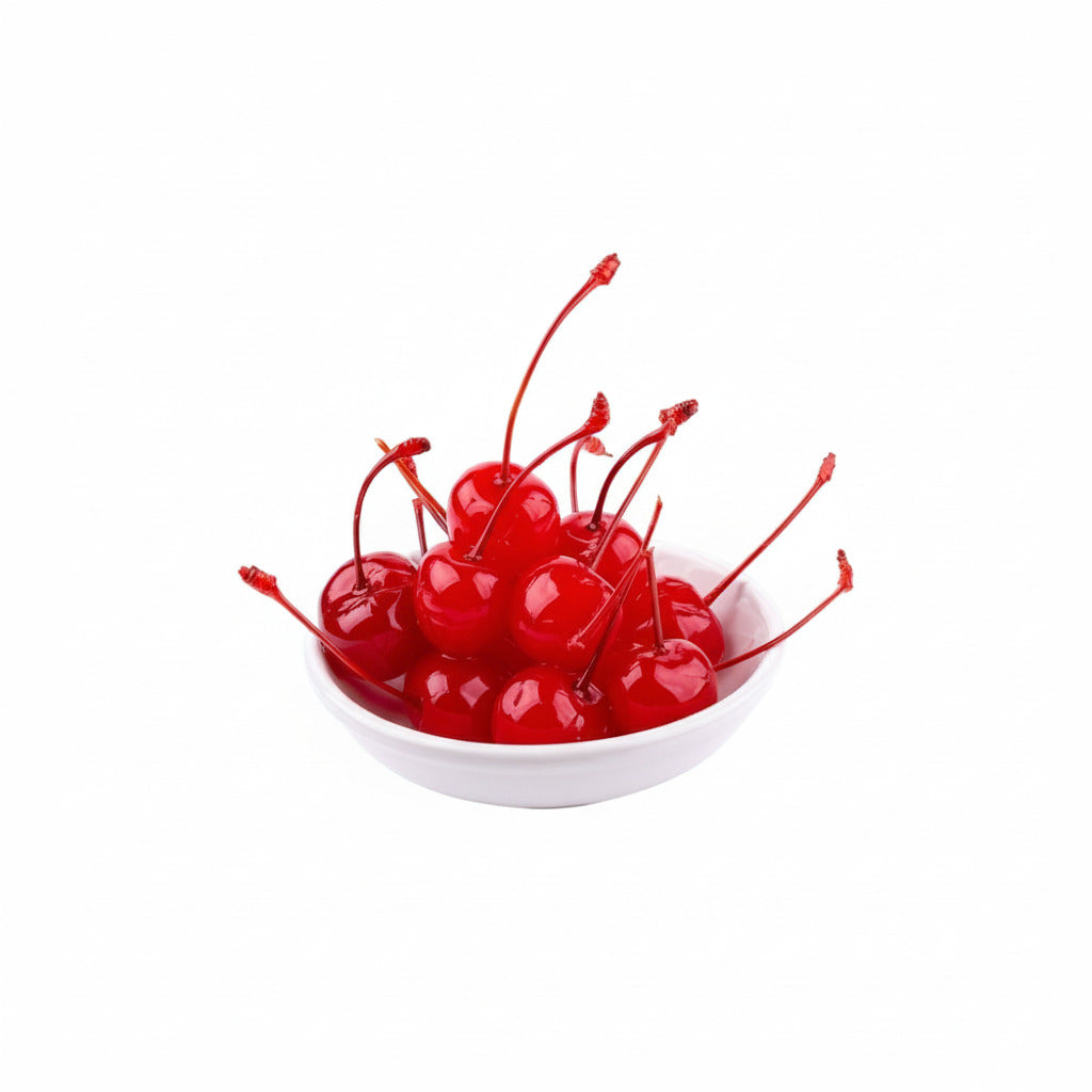 Desata tu creatividad con las Cerezas Enteras rojas, seleccionadas cuidadosamente y conservadas en almíbar para mantener su sabor intenso, textura firme y ese característico color rojo vibrante. Conservan su tallo para una presentación elegante y profesional.